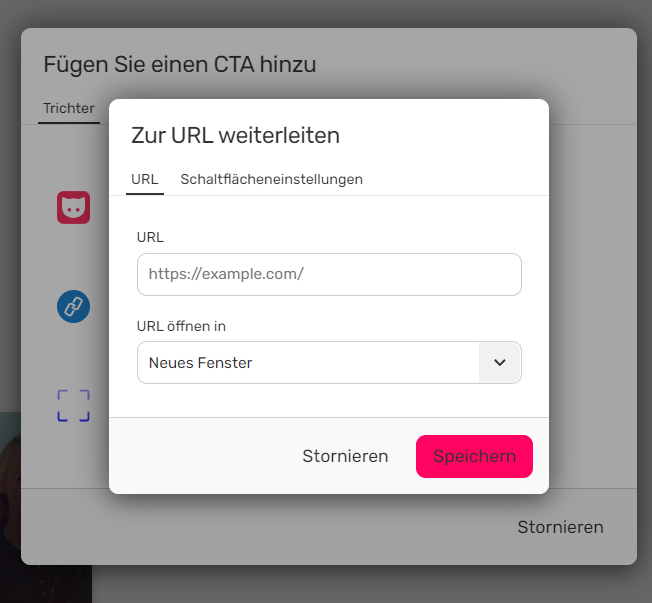 Du kannst wählen, ob die URL innerhalb der Seite oder in einem neuen Tab geöffnet werden soll.