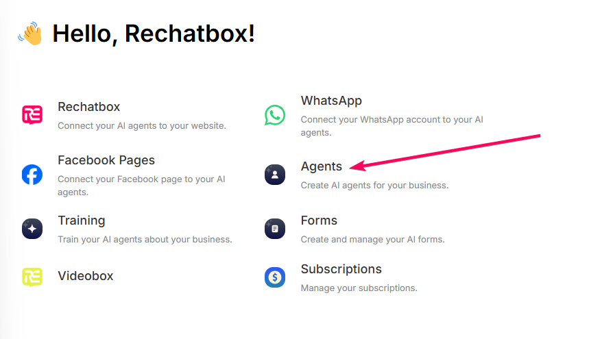 Once you are in the Rechatbox dashboard, you can see a section named My Agents.